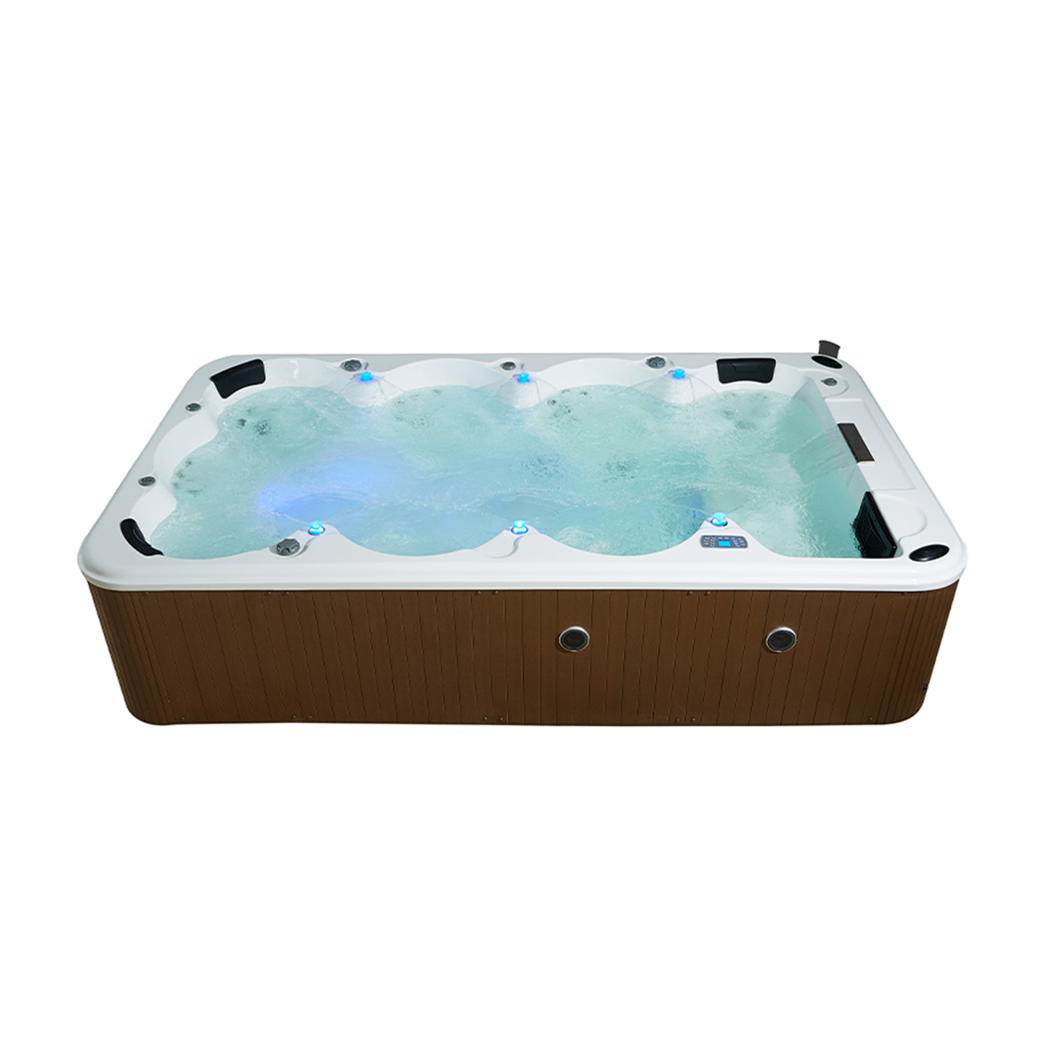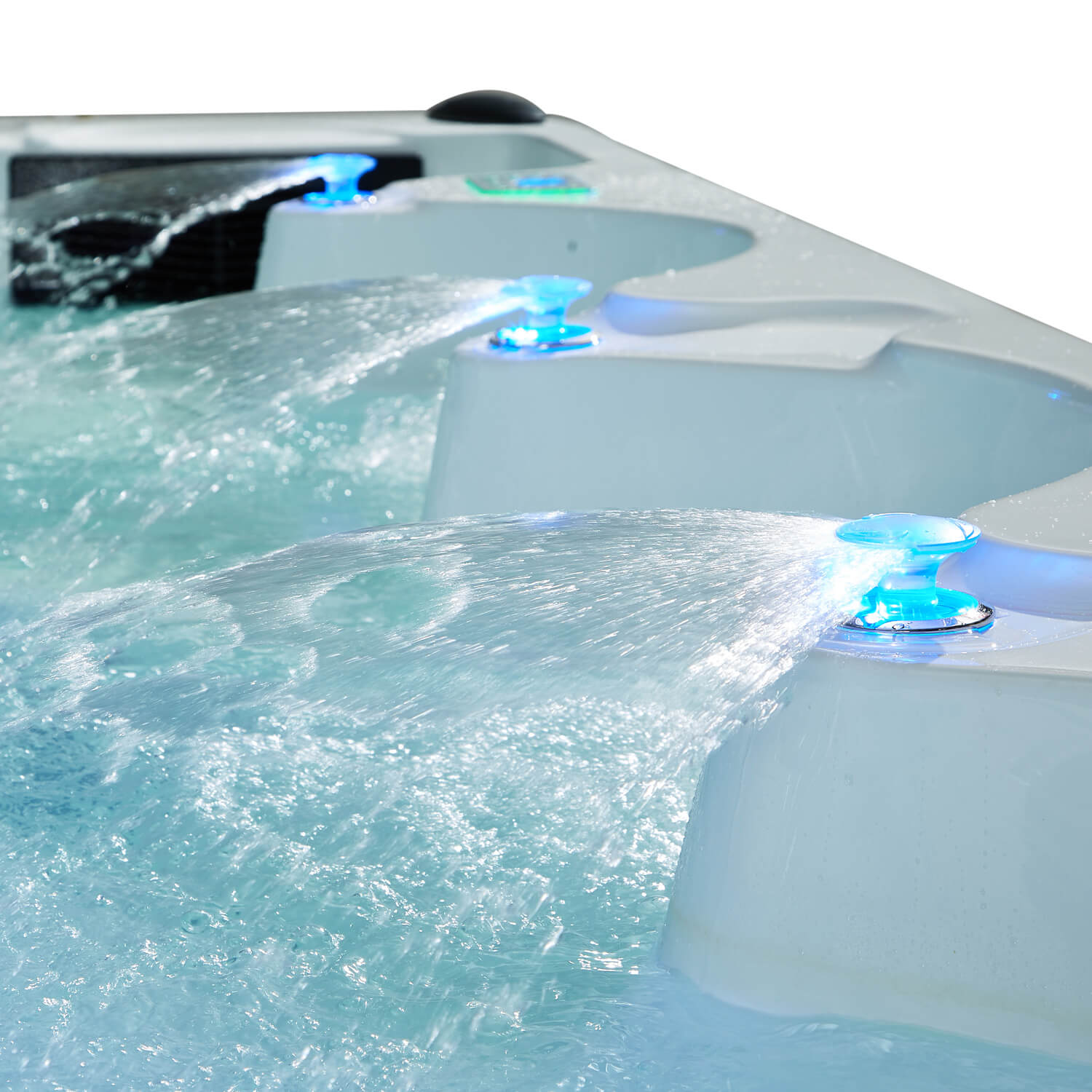 Saint Tropez offre il meglio dell’esperienza idromassaggio. Abbiamo posizionato nei punti più strategici delle sue sedute ben 86 getti ad aria, per una pressione energica e tonificante, e 20 getti ad aria per sensazioni carezzevoli. Vuoi sorprendere i tuoi ospiti? Attiva la meravigliosa cascata emozionale e le fontanelle disposte lungo i bordi, con i loro giochi d’acqua e di luce.