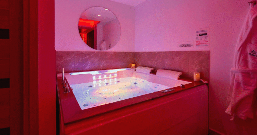 A proposito di colori, per creare il tuo angolo di benessere in casa ti consigliamo di optare per complementi di arredo dalle tonalità chiare, come il color crema, il bianco e il giallo, dai pouf ai tessili. Per un’armonia cromatica unica puoi sempre affidarti alle innumerevoli luci colorate offerte dalla cromoterapia. Una soluzione unica da integrare nella tua vasca per vivere un’esperienza di relax che stimola corpo e mente. (foto: @ibisco_suites)