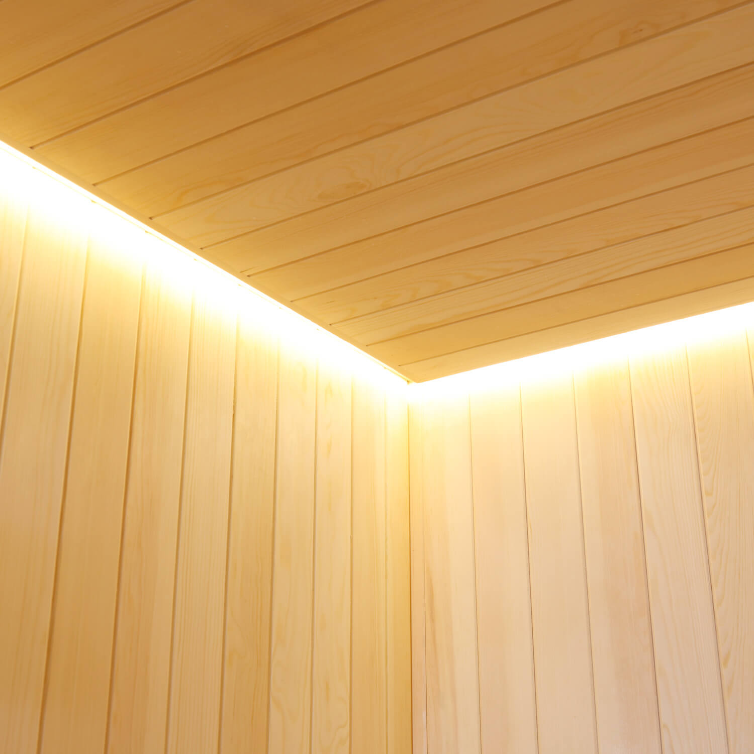 La sauna finlandese Zermatt è un modello rettangolare perfettamente collocabile a centro parete ed è disponibile in 3 differenti misure per venire incontro alle esigenze di ogni spazio abitativo.