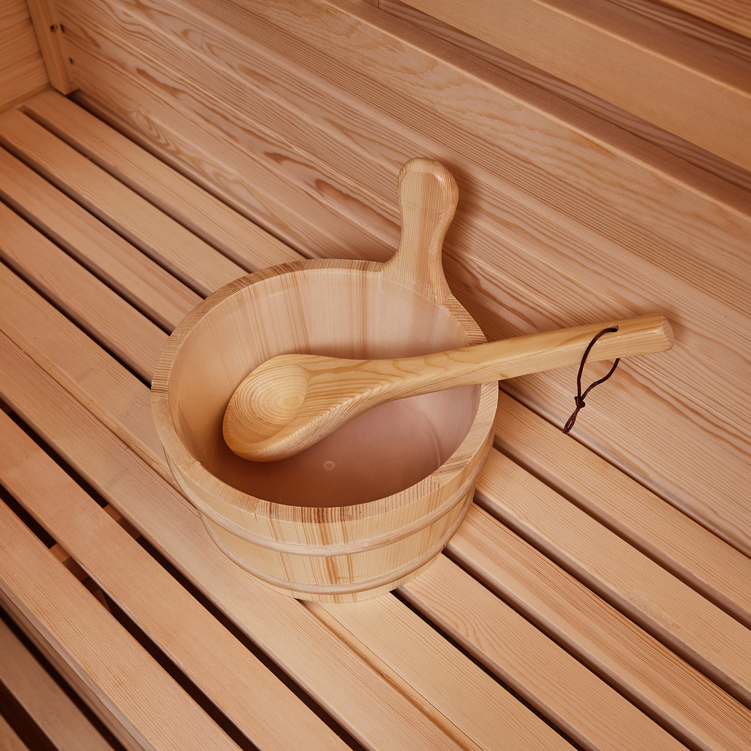 Le saune finlandesi e ad infrarossi da interno sono realizzate in pino bianco finlandese. Il materiale utilizzato è di alta qualità e viene garantito 5 anni.
