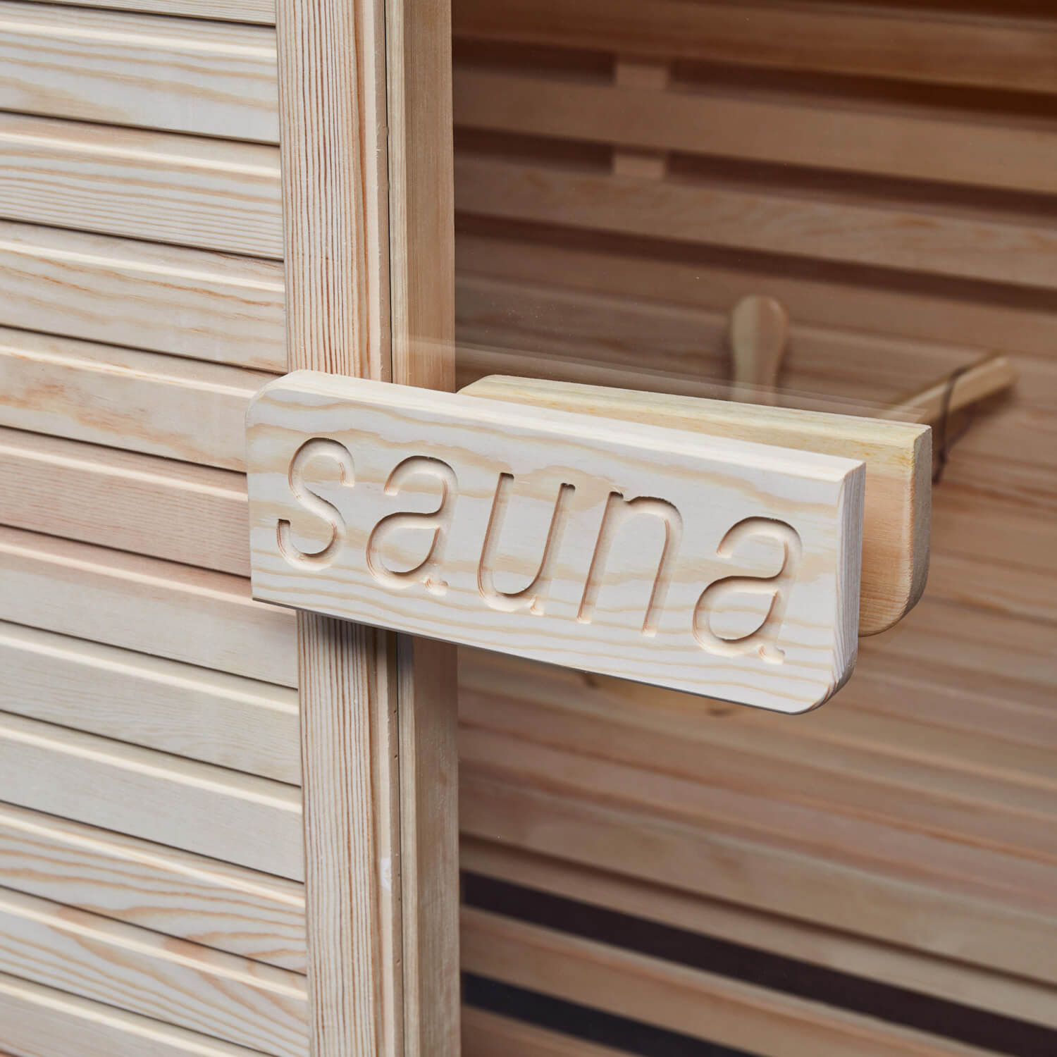 E’ dotata di un display elettronico di ultima generazione da cui è possibile gestire tutte le principali funzioni quali la scelta della temperatura desiderata, programmare il periodo temporale della sessione di sauna, scegliere e memorizzare le sintonie radio, connettere tramite bluetooth il vostro smartphone, tablet o altro supporto per ascoltare la vostra musica preferita. Nel comodo ripostiglio con maniglia della Sauna Cervinia potrete tenere gli asciugamani e le ciabatte, mentre nei due incavi in legno potrete appoggiare bicchieri e bottiglia d’acqua, piacevolissima dopo una calda seduta defaticante in sauna.
