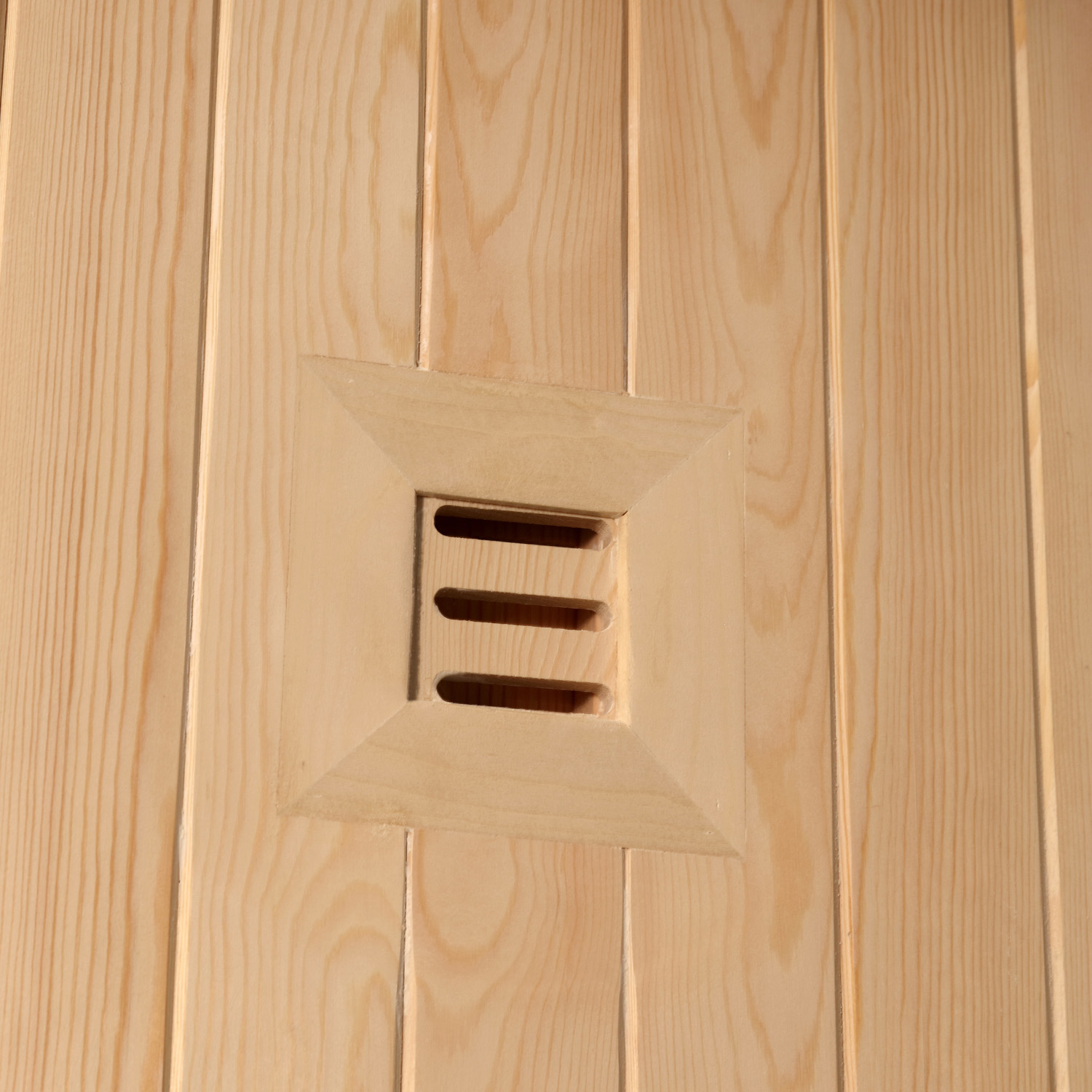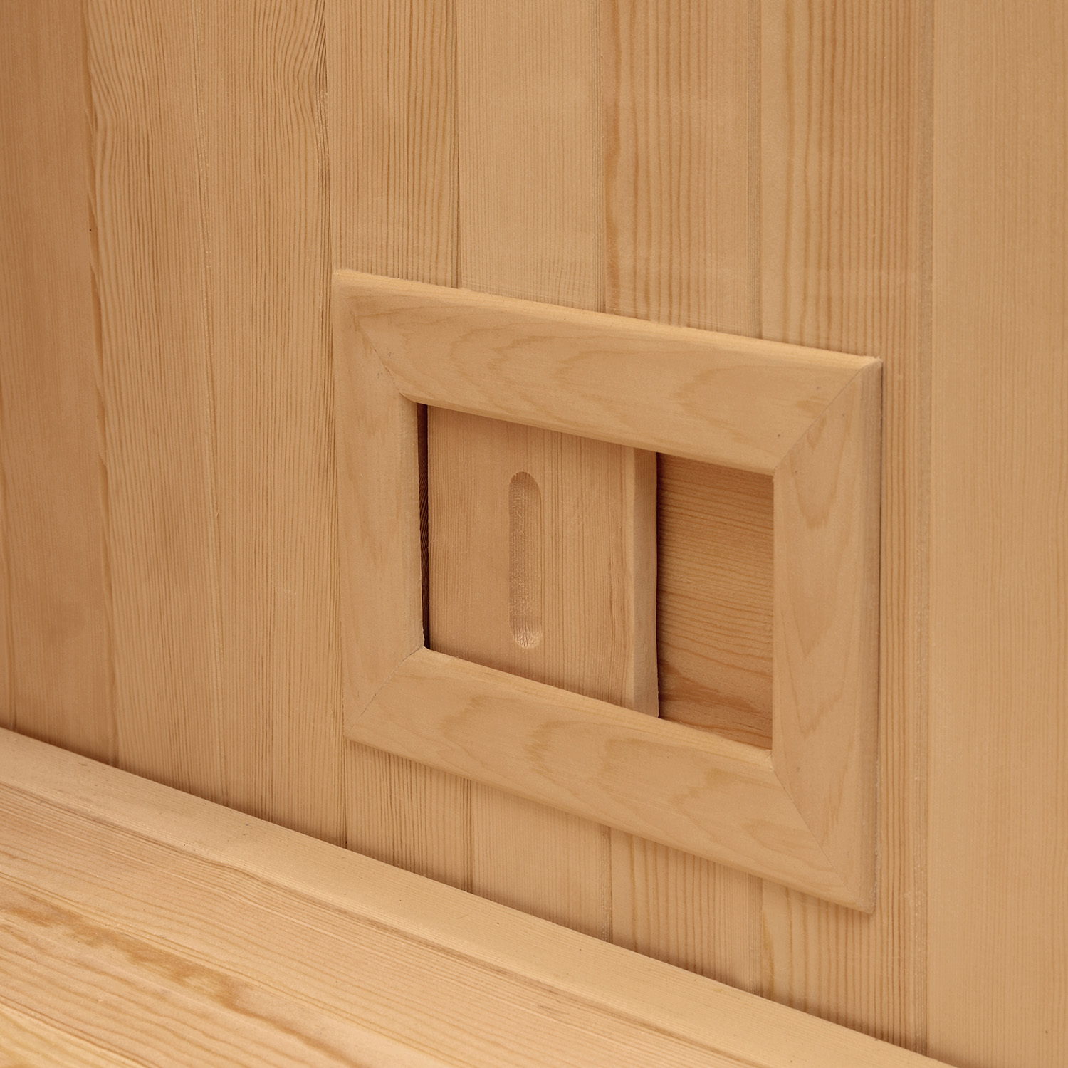 La Sauna Tradizionale Innsbruck permette di ospitare più persone comodamente distese lungo le ampie e confortevoli panche in legno di pino finlandese.