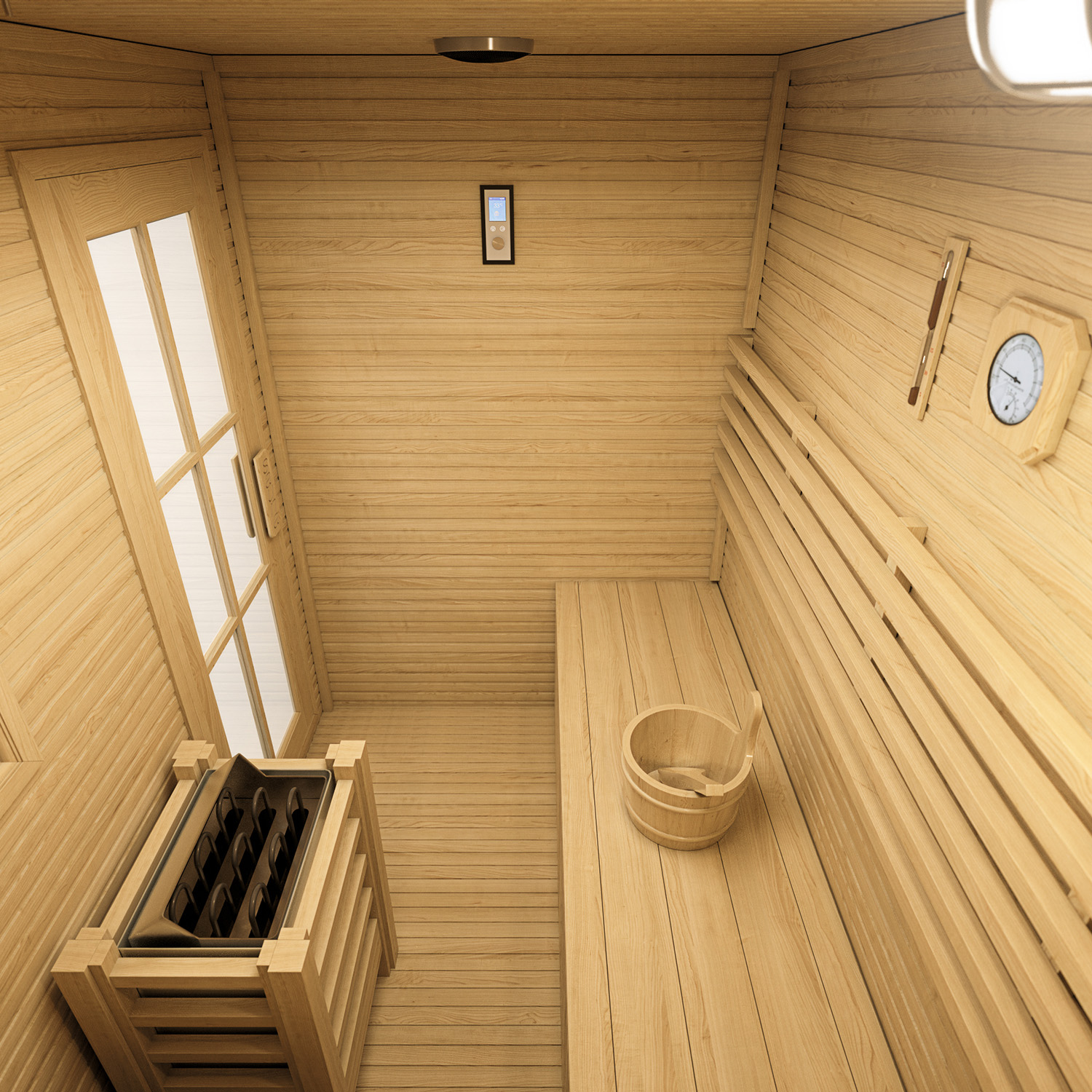 La Courmayeur è interamente realizzata in legno di pino finlandese, e dispone di un display di ultima generazione da cui è possibile azionare il riscaldamento, il tempo di seduta, la cromoterapia, connettere tramite bluetooth lo smartphone, tabet o altro supporto per ascolatre la vostra musica preferita. Questo prodotto come tutte le saune finlandesi Dimhora è dotata di tutti gli accessori inclusi quali secchio e mestolo, clessidra e igrometro.