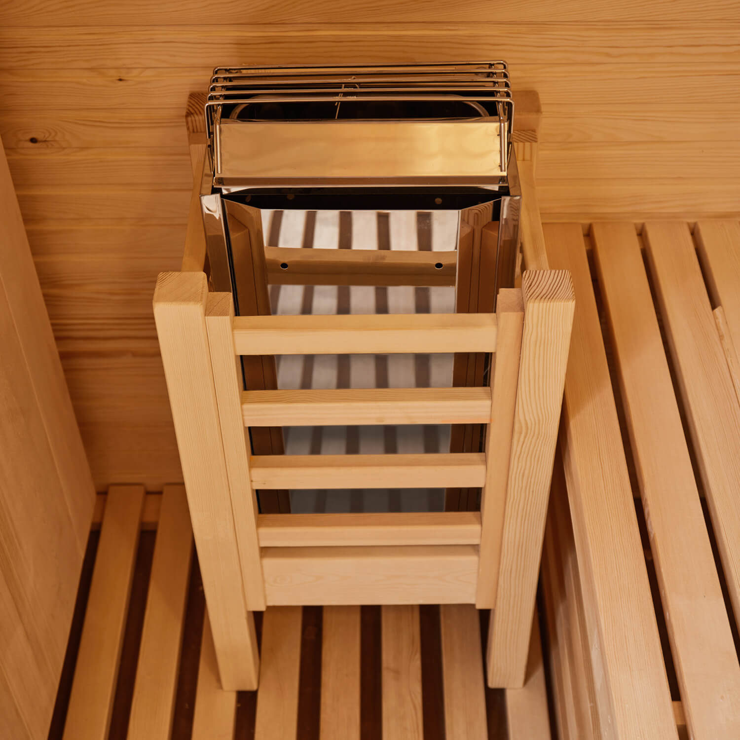 La Sauna finlandese può essere utilizzata anche a temperature più basse per chi soffre il caldo estremo perché è programmabile tramite il suo display. Più è alta la temperatura e maggiori sono i benefici derivanti dalla sauna.