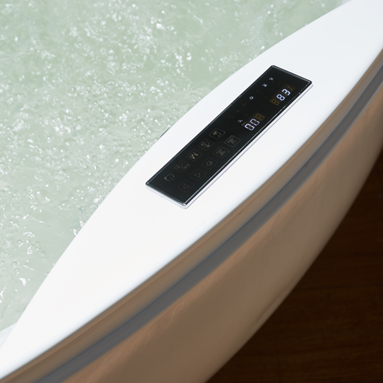 È una vasca realizzata in acrilico bianco lucido e ne permette una pulizia e manutenzione molto semplice. Tramite i due pulsanti pneumatici si può azionare il funzionamento dei 14 getti idromassaggio ad aria e ad acqua; una volta messa in funzione si potrà anche modulare l’intensità del getto dell’idromassaggio per scegliere tra un massaggio più delicato o uno più intenso.