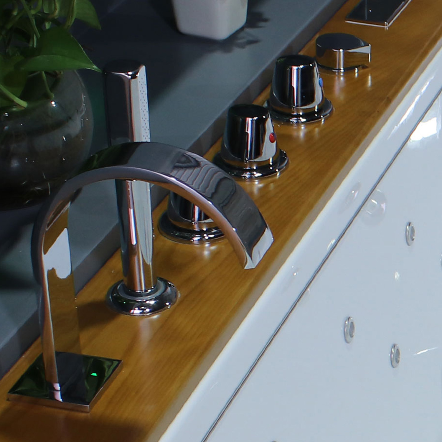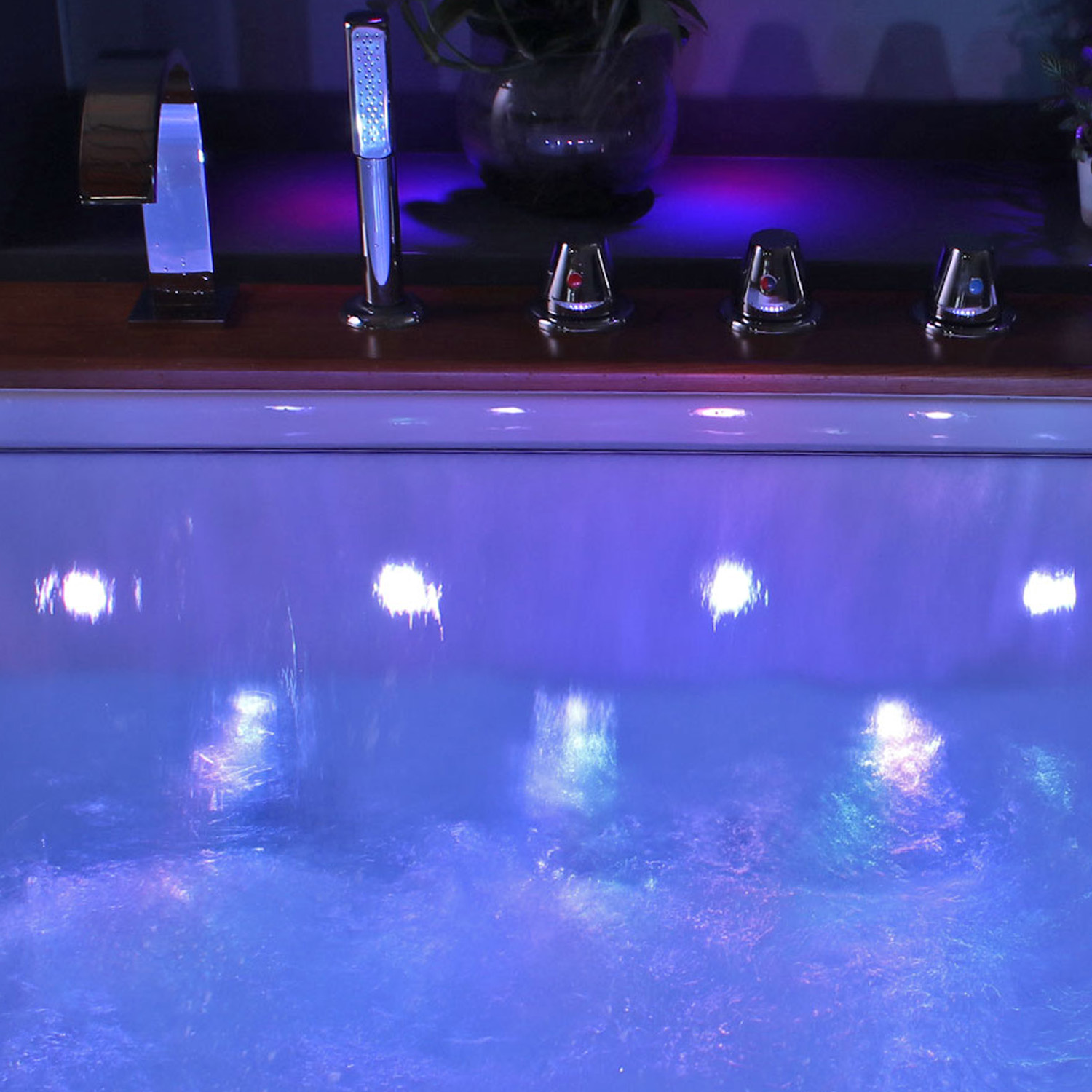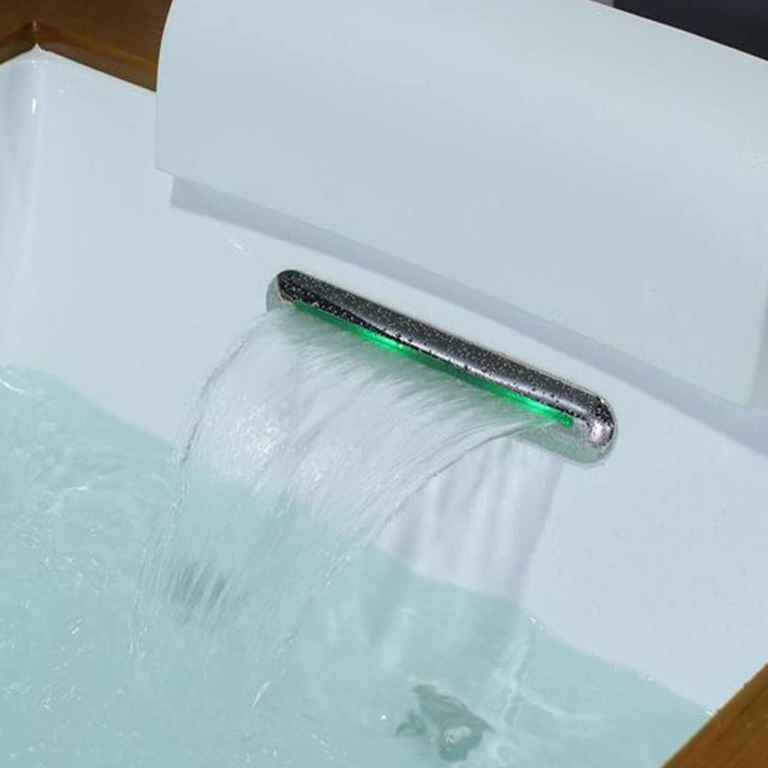 La cascata emozionale a LED, situata in corrispondenza del comodo ed ampio cuscino del modello Olimpia, insieme alle due laterali che si azionano automaticamente con l’avvio dell’idromassaggio, è l’ideale per godere di un piacevole massaggio. Le luci a led, azionabili tramite display, offrono una cromoterapia di qualità e contribuiscono a creare un’atmosfera propizia al relax.