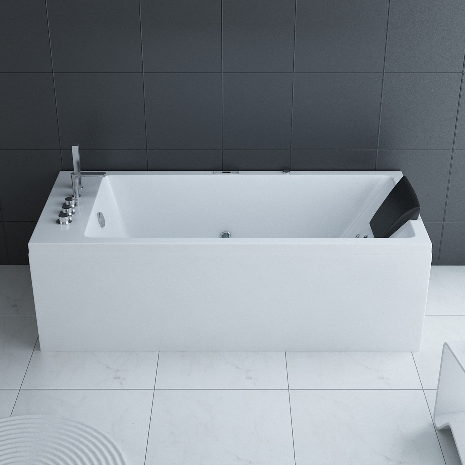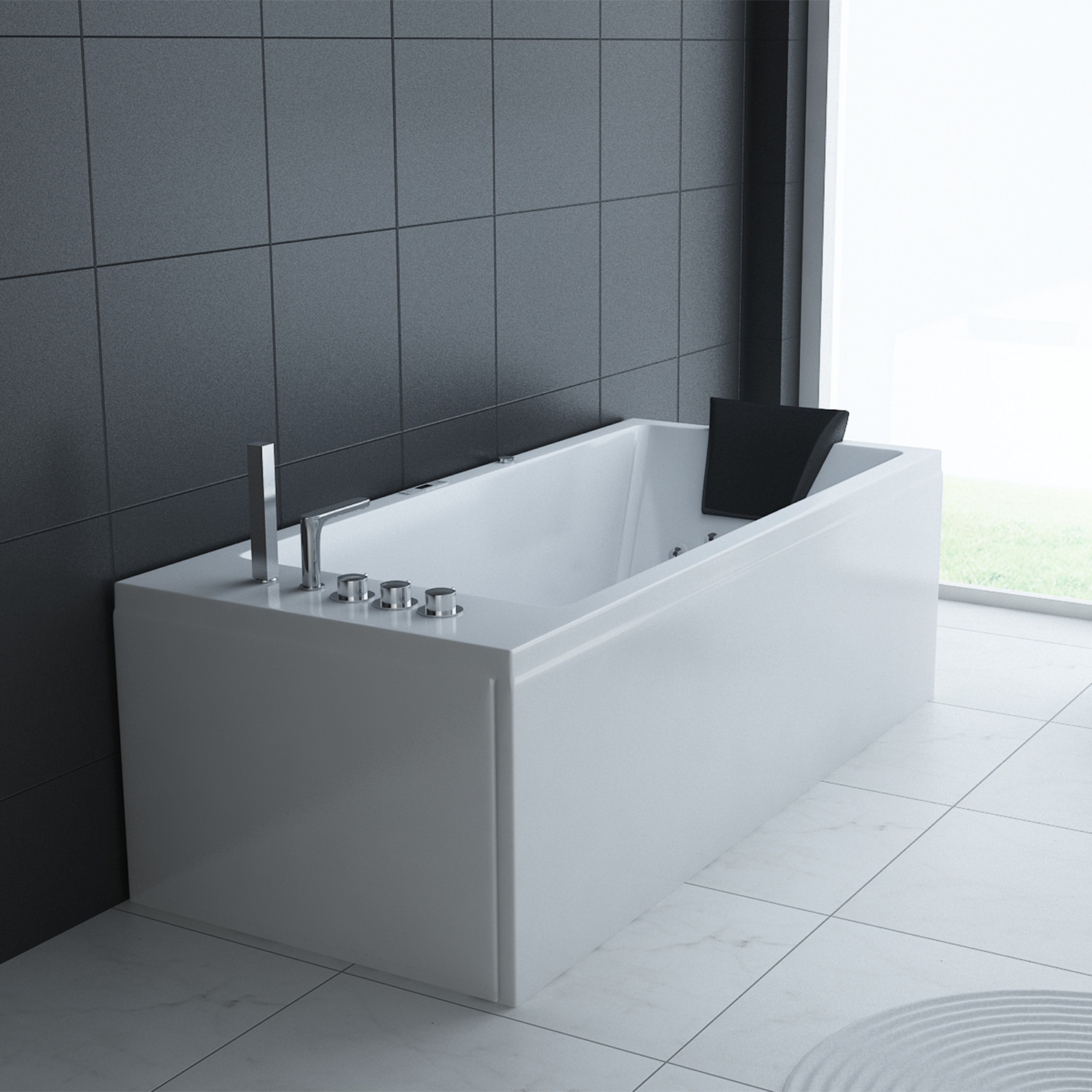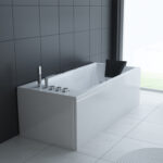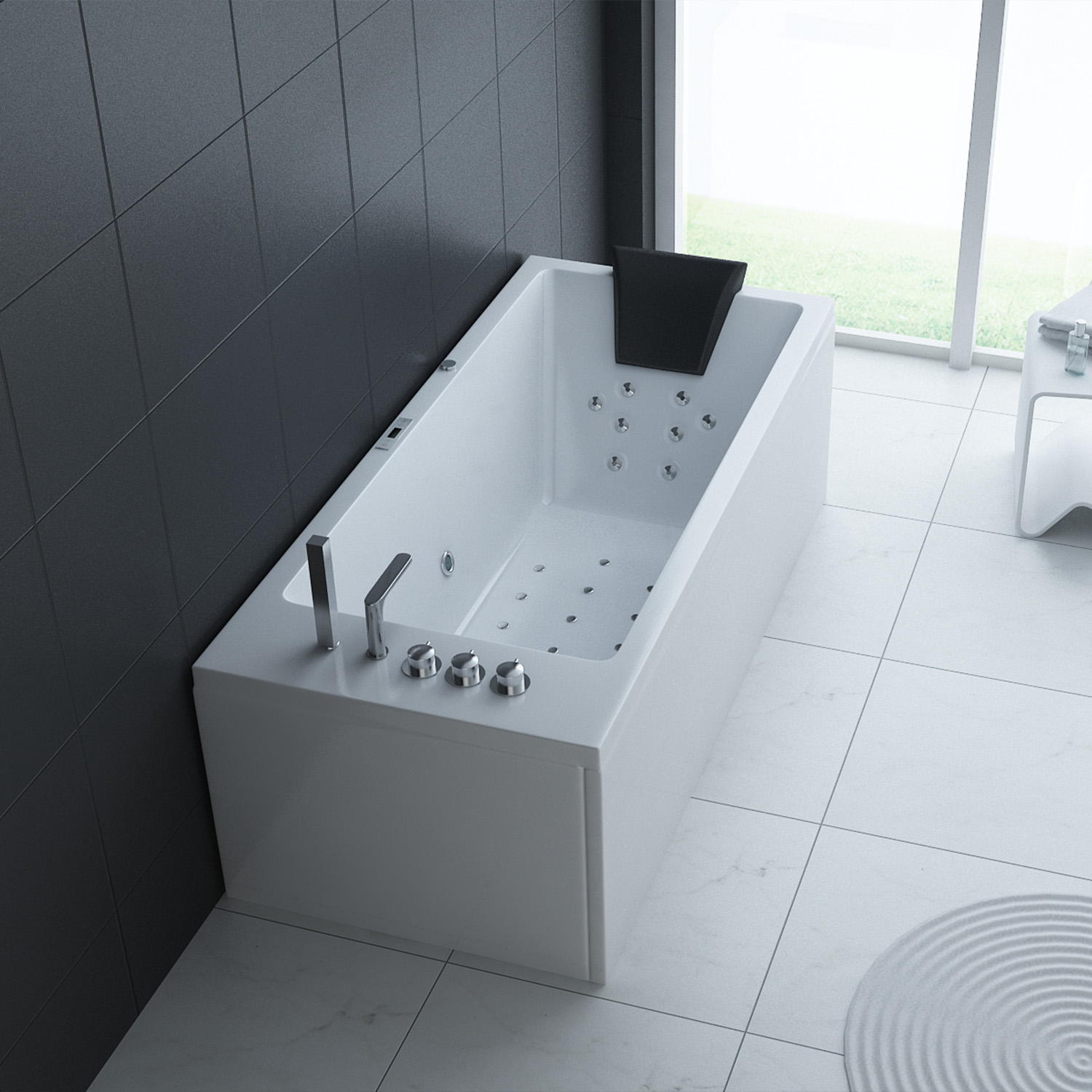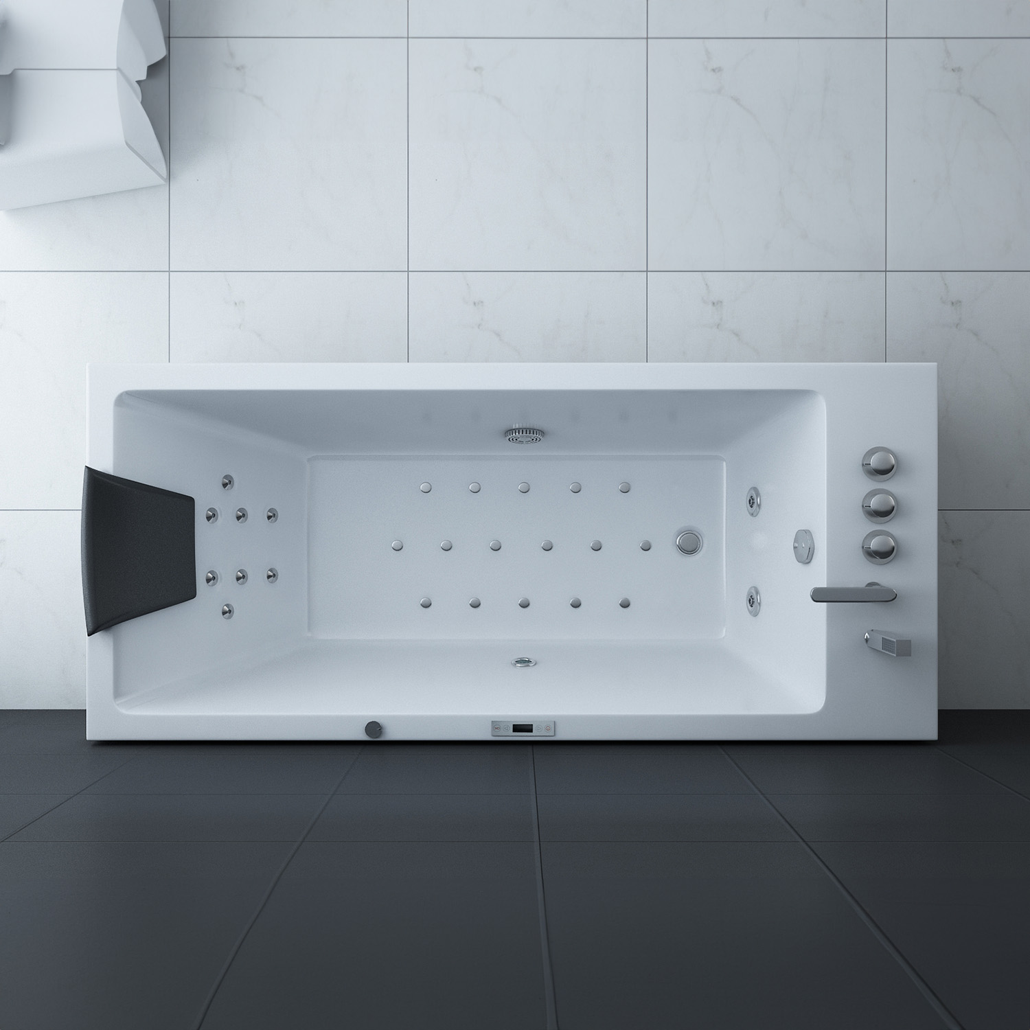 Lungo 180cm, perfetto per chi desidera distendersi durante il bagno, il modello di vasca idromassaggio Santiago è caratterizzato da un perimetro rettangolare, un design minimale e moderno.