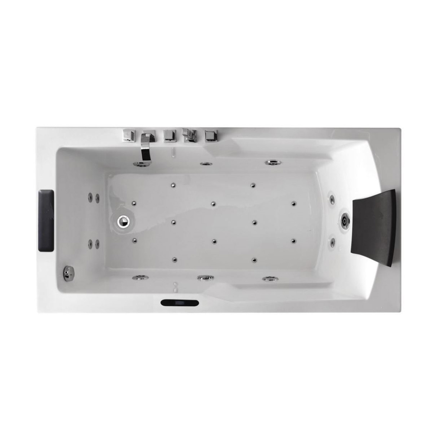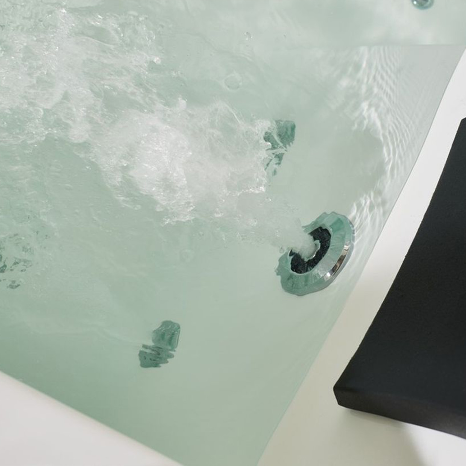 Lungo 180cm, perfetto per chi desidera distendersi durante il bagno, il modello di vasca idromassaggio Santiago è caratterizzato da un perimetro rettangolare, un design minimale e moderno.