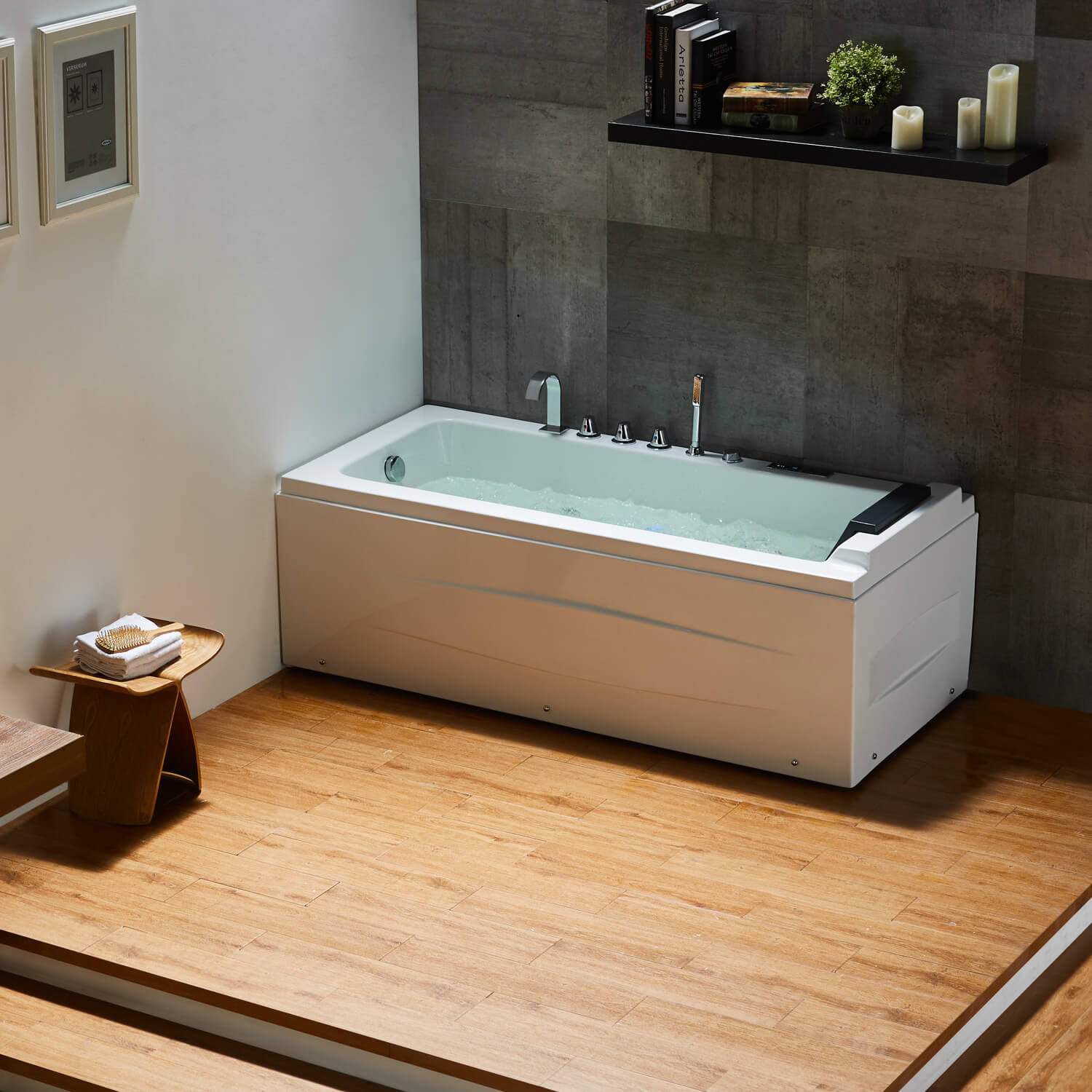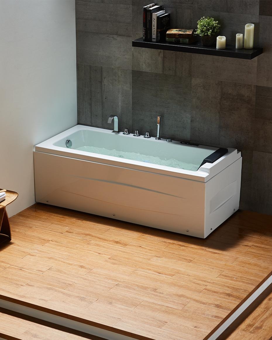 La consegna avviene in una scatola di trasporto sicura. La vasca idromassaggio rettangolare 160×75 è preinstallata sul suo telaio di supporto. Su richiesta, offriamo anche un servizio professionale di installazione e montaggio.