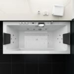 Dotata di un completo sistema idromassaggio: idromassaggio dorsale, idromassaggio perimetrale (bacino e zona gambe-articolazioni), idromassaggio ad aria, distribuito su tutto il fondo vasca, grazie ad un numero complessivo di 26 getti, di cui ben 16 ad aria.