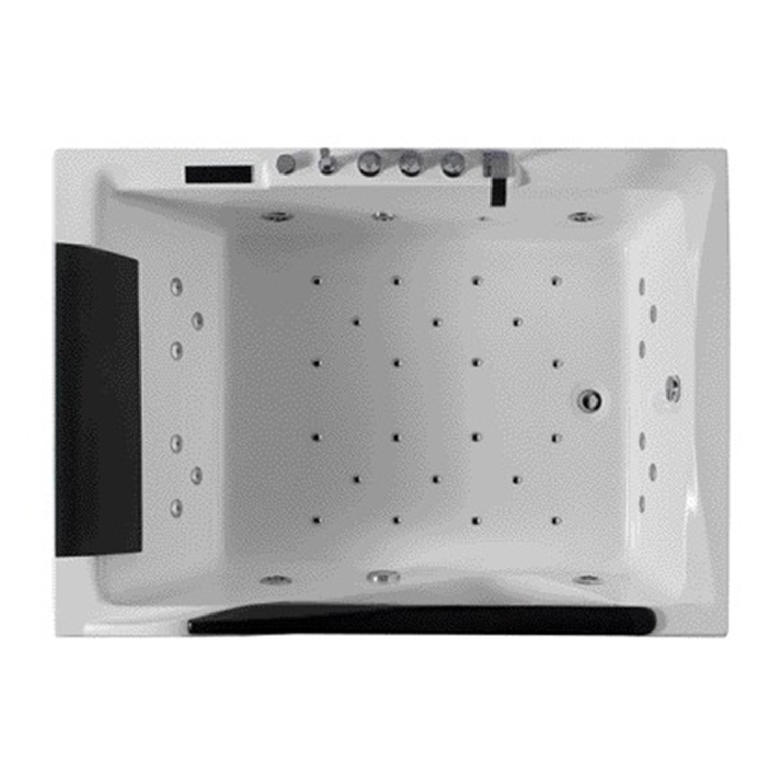 La vasca idromassaggio Maddalena è un elegante modello full optional realizzato in acrilico bianco lucido di alta qualità e dotato di una struttura portante in acciaio inox. Premendo il pulsante dell’idromassaggio ad aria sul display del modello Maddalena, potrete rilassarvi con il soffice bagno di bollicine prodotto dalle 22 bocchette posizionate sul fondo vasca, a cui potrete aggiungere la spinta vigorosa ma modulabile dell’idromassaggio ad acqua composto da 16 getti perimetrali dorsali, cervicali e plantari.