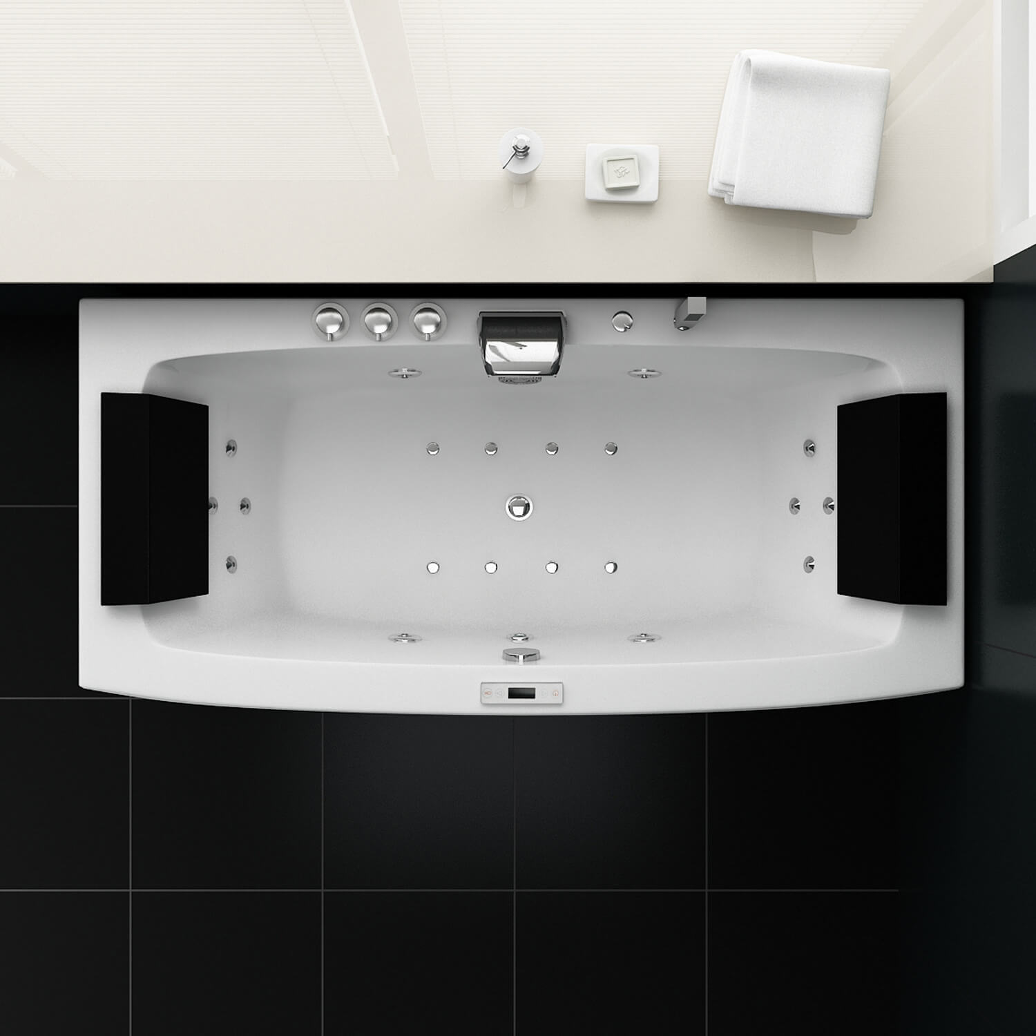 €Venezia Large, la vasca idromassaggio spaziosa con controllo da remoto, cromoterapia, idromassaggio, per un’esperienza di relax esclusiva.