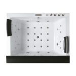 L’allestimento della vasca idromassaggio San Michele include l’ozonizzatore per l’igienizzazione delle tubature interne, il sistema di mantenimento della temperatura dell’acqua e la regolazione dell’intensità dei getti. Le funzioni del prodotto, l’idromassaggio combinato aria/acqua e la radio FM, sono facilmente gestibili grazie al display digitale.